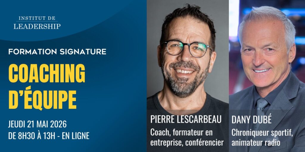 Animée par Pierre Lescarbeau, coach et formateur reconnu pour son approche humaine et stratégique, cette séance propose des outils pratiques pour améliorer le fonctionnement des équipes et renforcer la collaboration. Vous bénéficierez également du témoignage de Dany Dubé, chroniqueur sportif et animateur de radio, qui partagera un regard inspirant sur la dynamique de groupe et les leviers de motivation, issus du sport de haut niveau et du leadership en milieu professionnel.